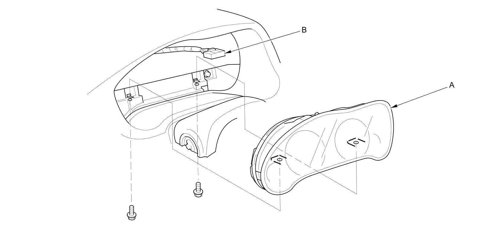 4. Remove the two bolts from under the dashboard, then pull the gauge control module (A) out carefully.
