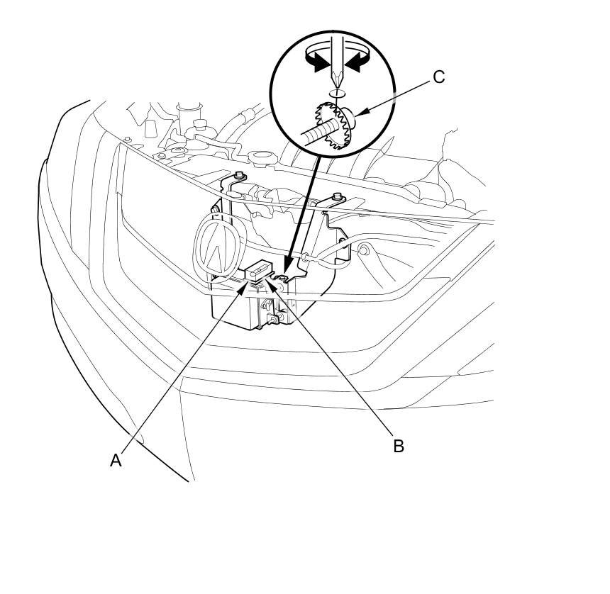 3. Turn the vertical adjusting bolt (C) on the driver's side with a screwdriver, and adjust the angle of millimeter wave radar so that the air bubble in the level is centered.