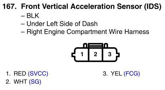 View 167 - Front Vertical Acceleration Sensor Connector View (IDS)