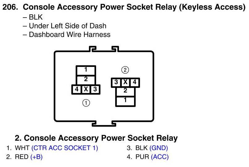 View 206 - Console Accessory Power Socket Relay Connector View (Keyless Access)