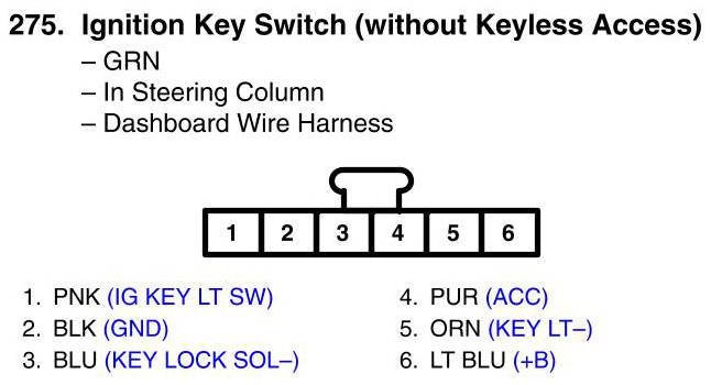 View 275 - Ignition Key Switch Connector View (Without Keyless Access)