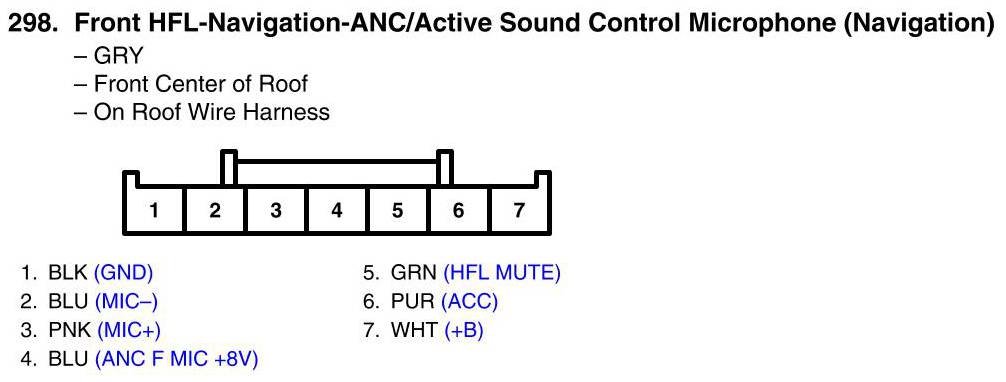 View 298 - Front HFL-Navigation-ANC/Active Sound Control Microphone Connector View (Navigation)