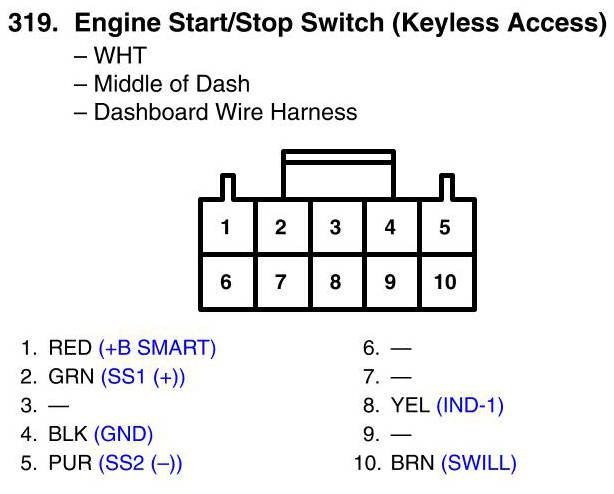 View 319 - Engine Start/Stop Switch Connector View (Keyless Access)