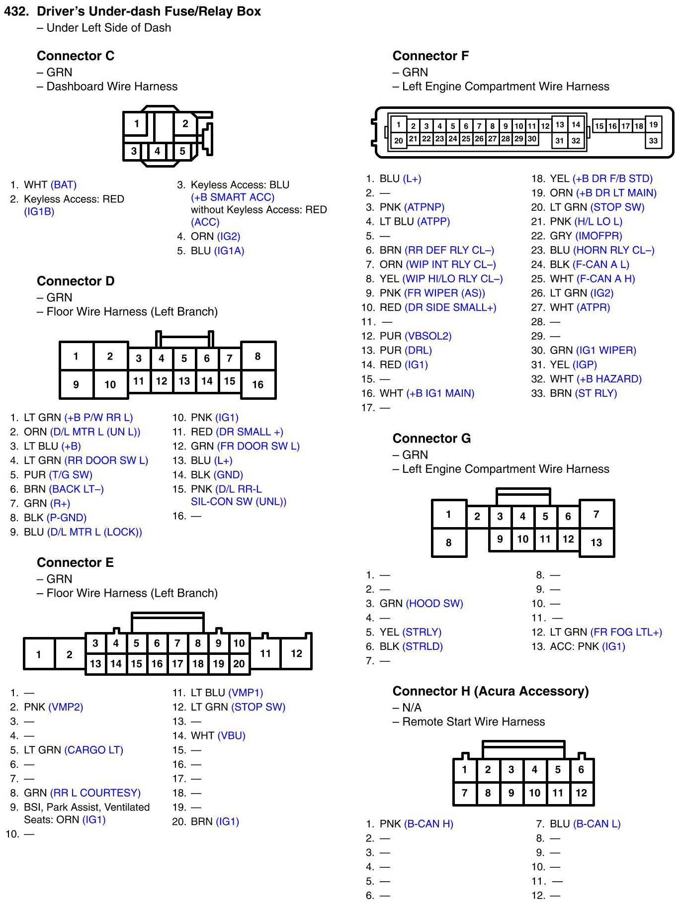 Driver's Under-Dash Fuse/Relay Box Connector View