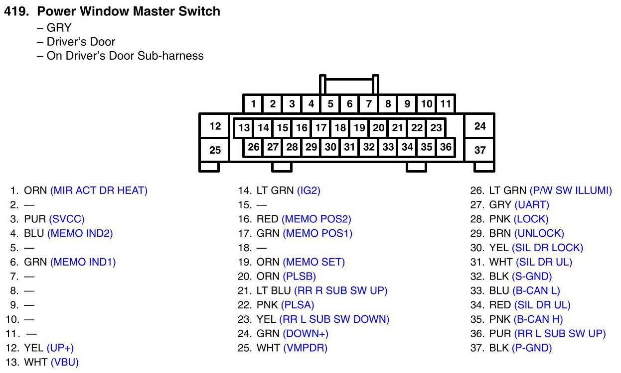 Power Window Master Switch Connector View