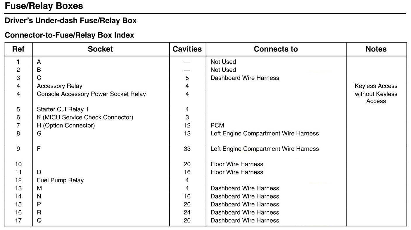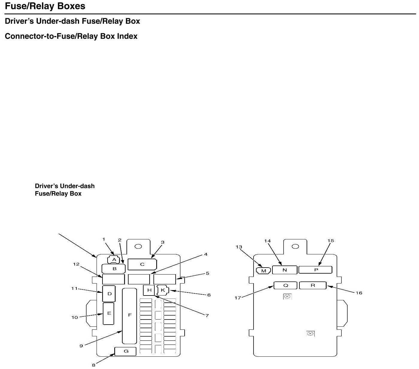 Driver's Under-dash Fuse/Relay Box - Connector-to-Fuse/Relay Box Index