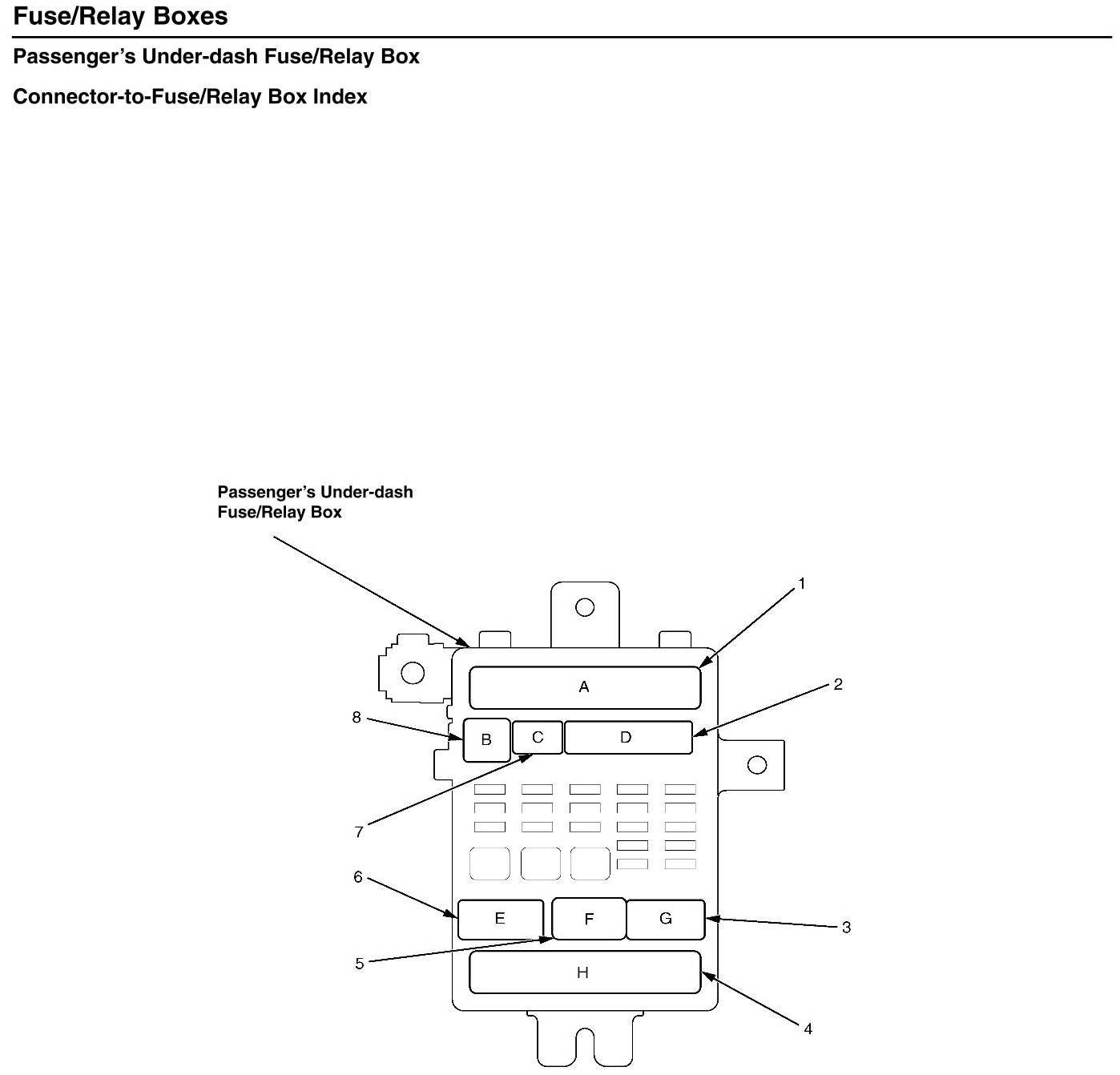 Passenger's Under-dash Fuse/Relay Box - Connector-to-Fuse/Relay Box Index