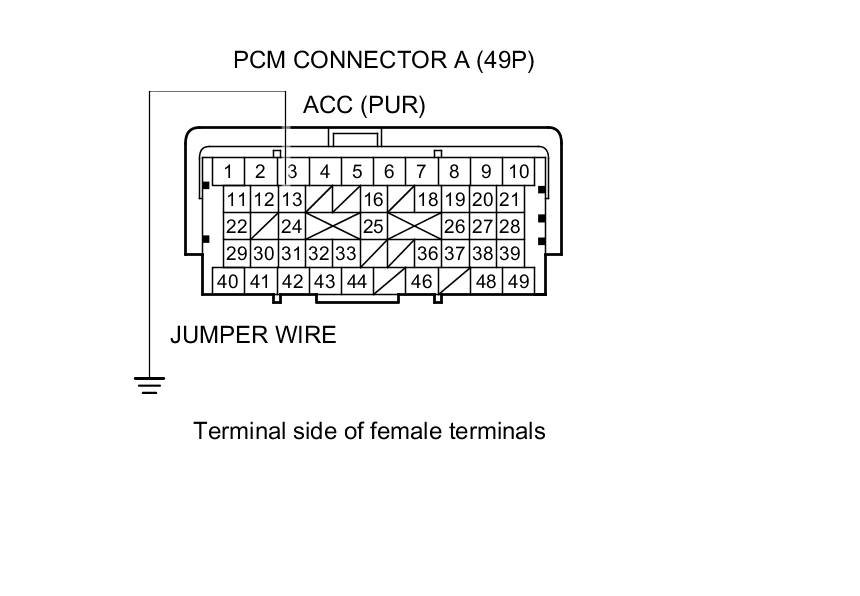 13. Momentarily connect PCM connector terminal A13 to body ground with a jumper wire several times.