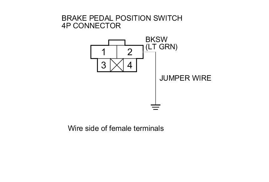 9. Connect brake pedal position switch 4P connector terminal No. 2 to body ground with a jumper wire.