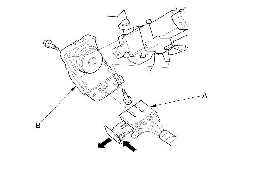 4. Disconnect the 5P connector (A) from the ignition switch (B).