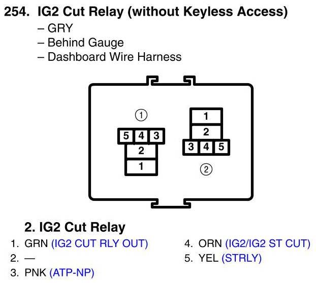 IG2 Cut Relay Connector View (Without Keyless Access)