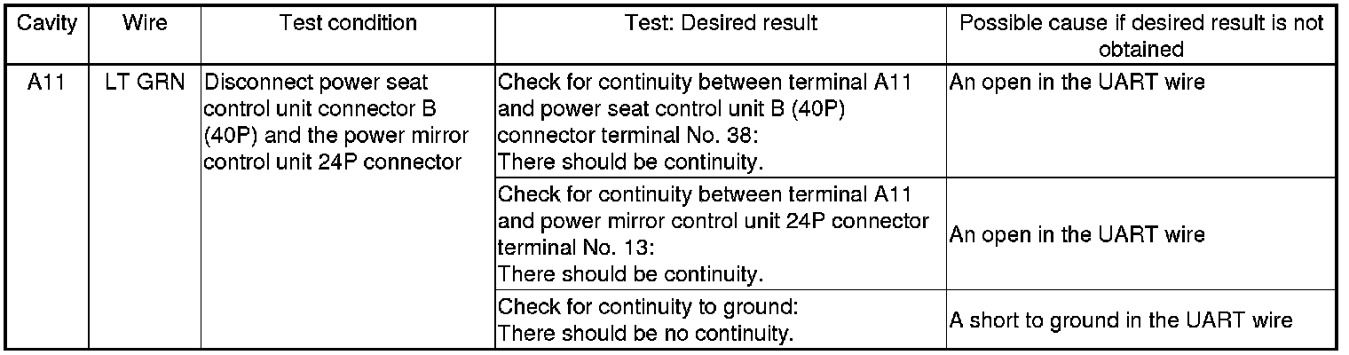 5. Reconnect the connector to the power tilt/telescopic steering control unit, and do the following input tests: