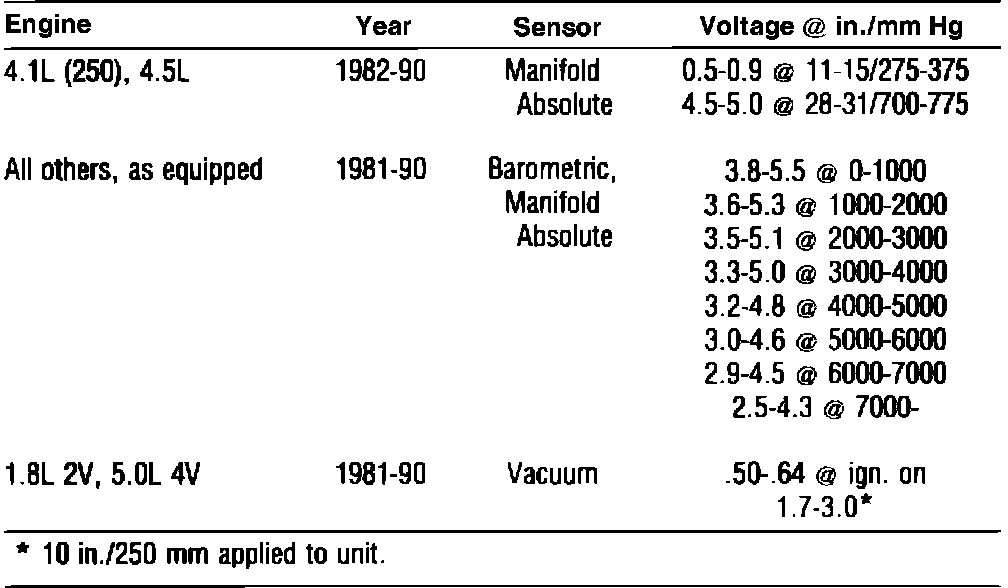 Home >> Cadillac >> 1982 >> Cimarron L4-112 1.8L >> Repair and Diagnosis >> Specifications >> Electrical Specifications >> Barometric Pressure Sensor