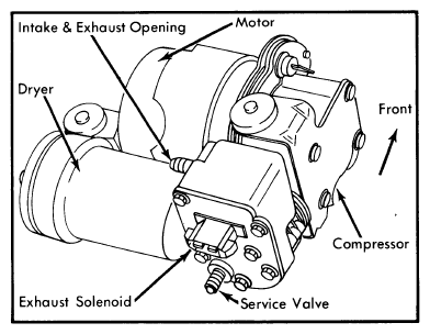 1. Disconnect wiring from compressor and exhaust solenoid terminals. See Fig 1.