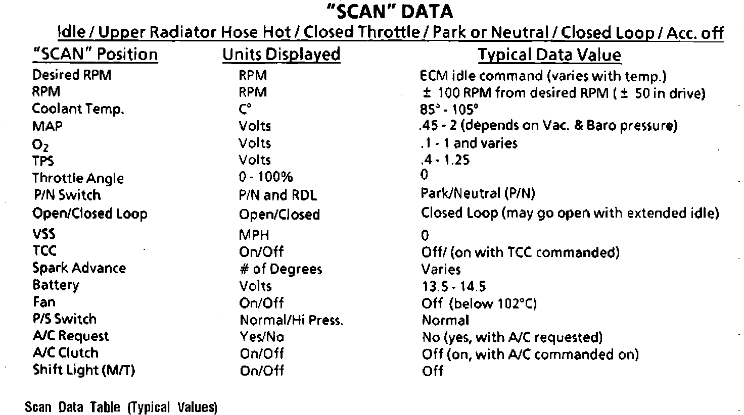 Typical Scan Data Values: