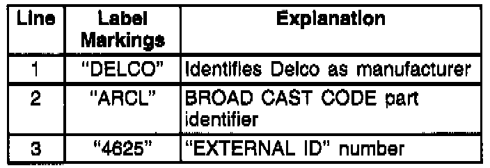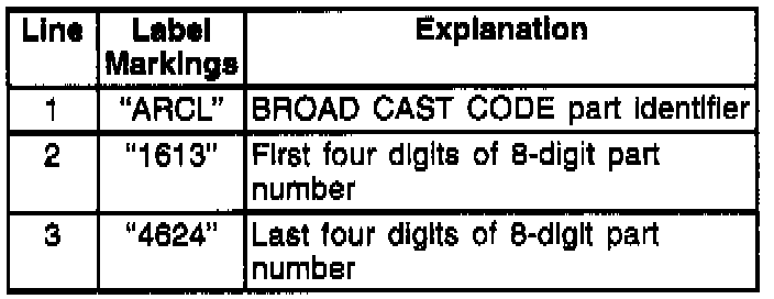 ^ Ordering the above PROM from the old marking format would require using a cross-reference chart to determine a service part number, based on the BROAD CAST CODE and EXTERNAL ID NUMBERS.