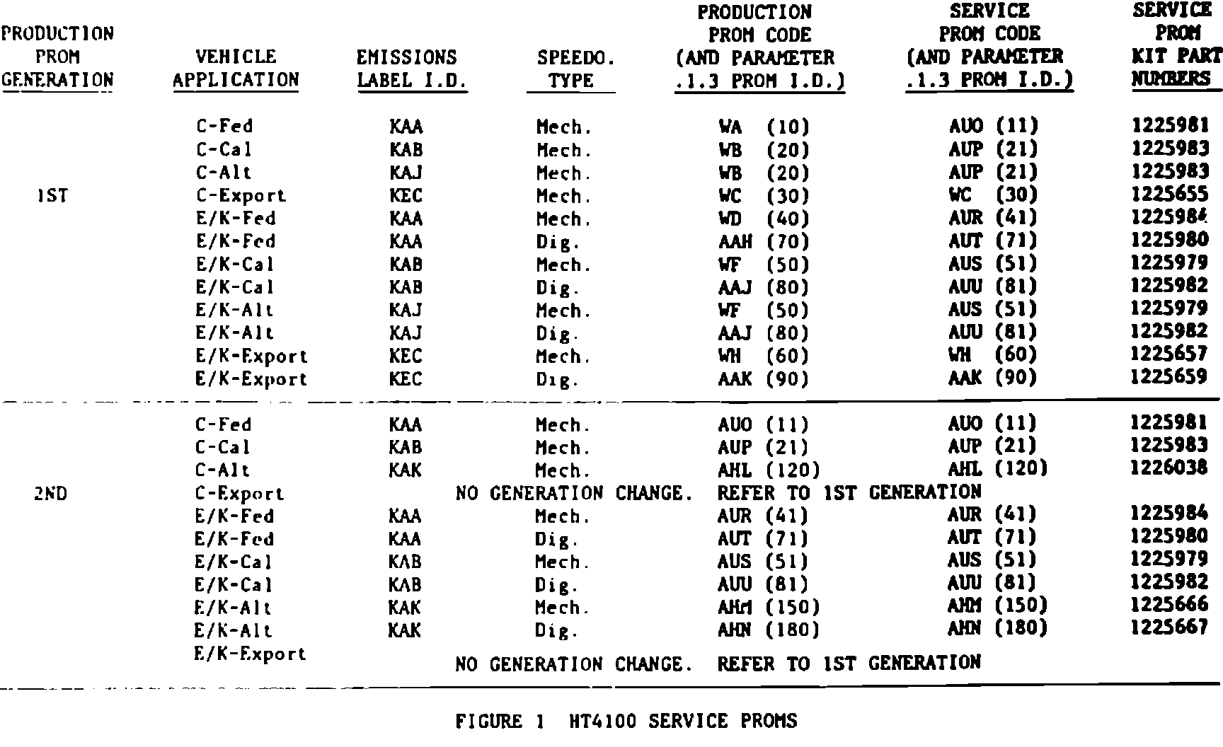 When servicing 1982 HT4100 equipped vehicles, refer to Figure 1 on the reverse side for updated PROM service parts information.