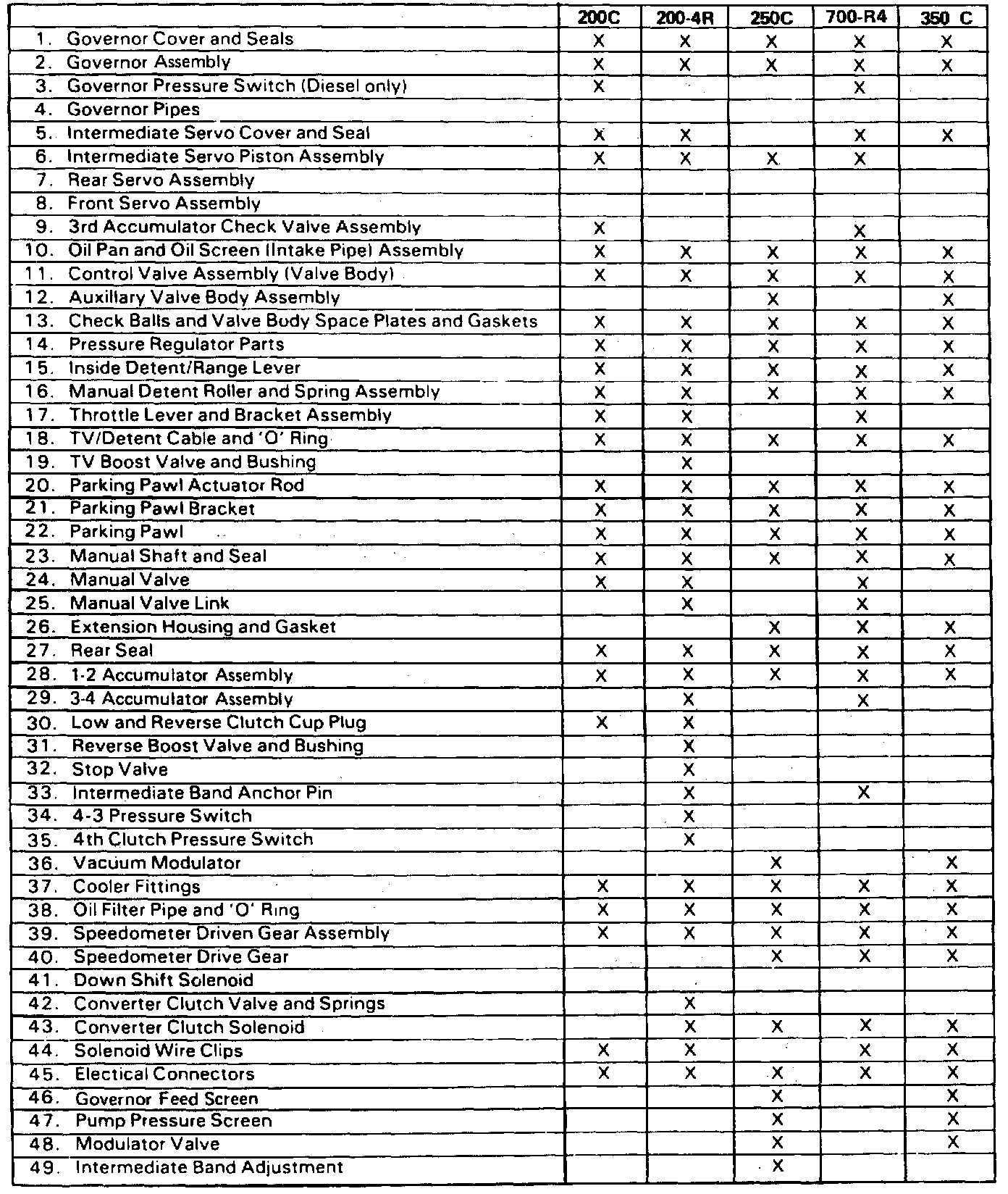 THE FOLLOWING PARTS CAN BE SERVICED WITH THE TRANSMISSION IN THE CAR. FOR