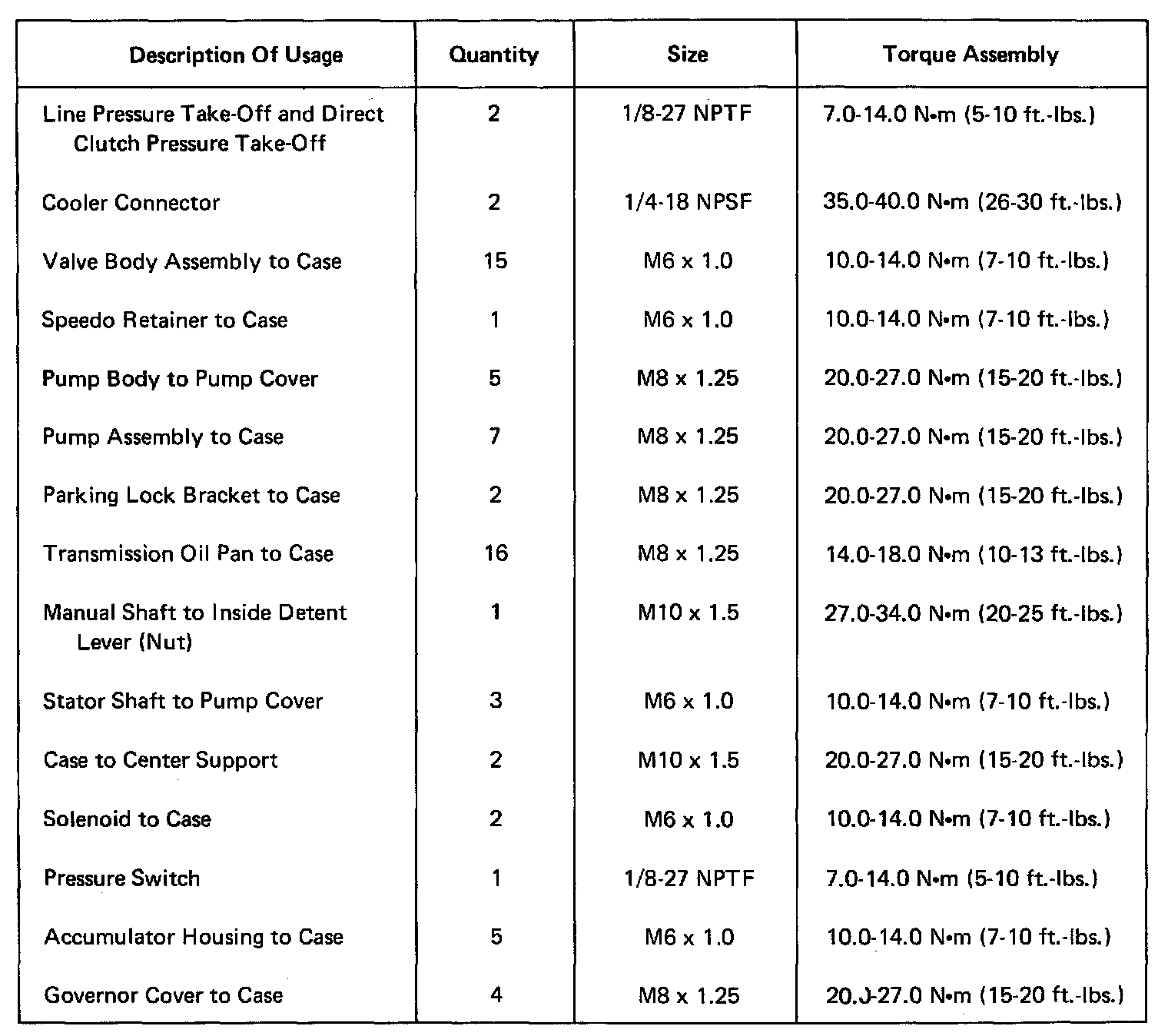 Torque Specifications