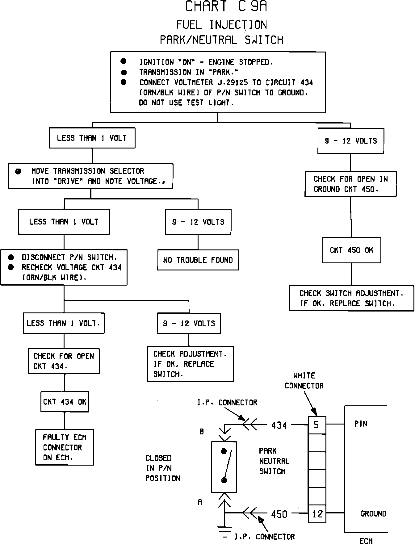Fig. 36 Chart C-9A Park/Neutral Switch 1982-83: