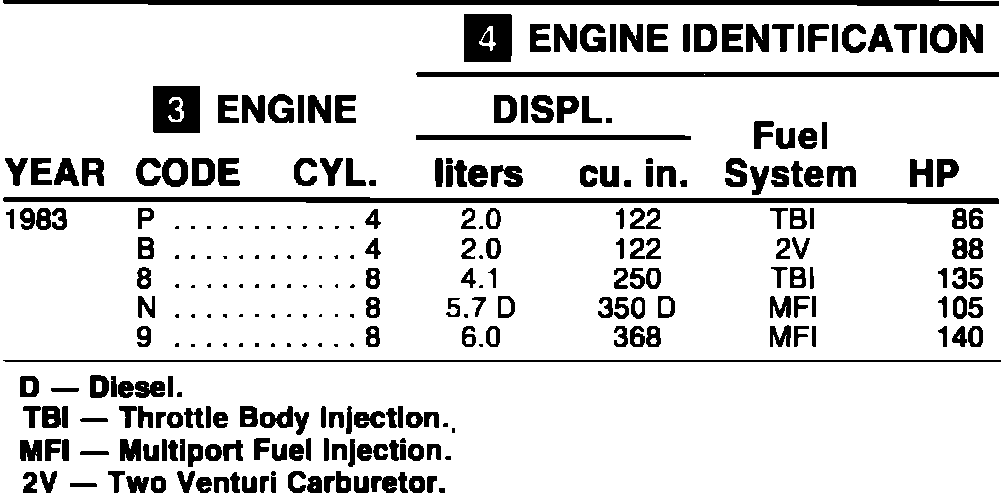 Home >> Cadillac >> 1983 >> Eldorado V8-252 4.1L >> Repair and Diagnosis >> Powertrain Management >> Application and ID >> Engine Code Identification