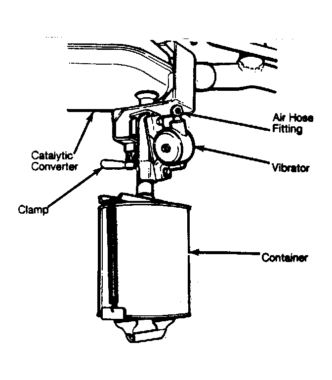 3. Clamp vibrator and catalytic container onto converter. See Fig 2 . Disconnect air supply from vacuum aspirator and attach it to vibrator unit. Allow vibrator to operate for about 10 minutes to remove all catalytic beads.