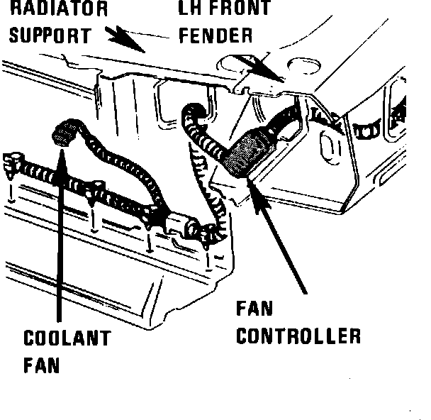 In Coolant Fan Harness, Behind LH Headlamps. (also called fan controller).
