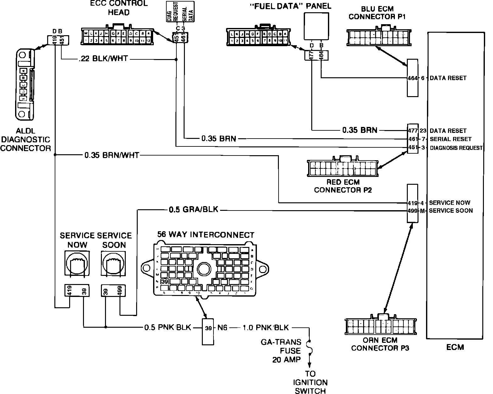 2. If code .7.8 passes when jumper is removed, the ECM is operating properly. Check circuit 990 (1985, 155) for an open between fuel data panel and ground. If circuit is satisfactory, check for faulty fuel data connector or panel.