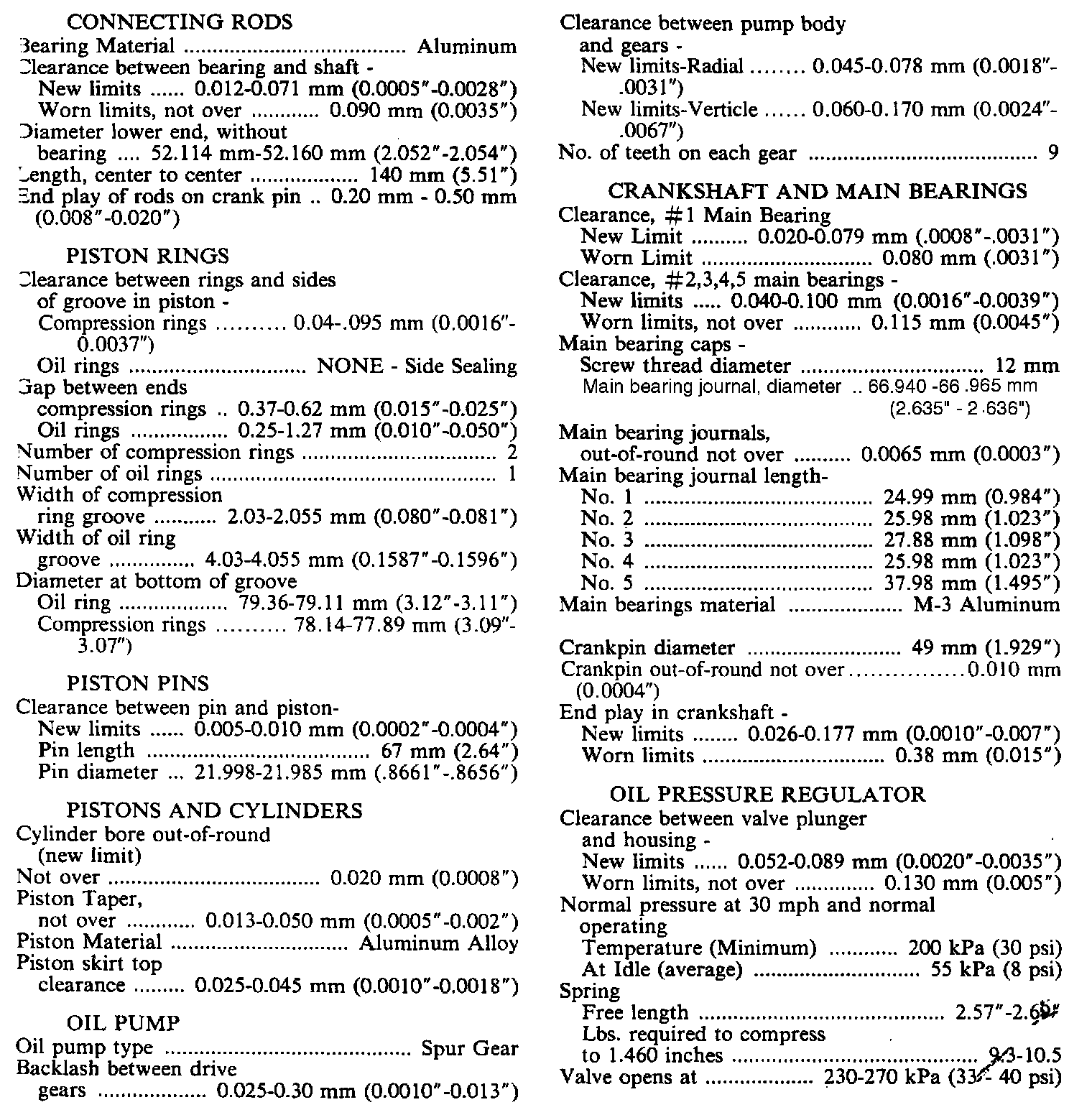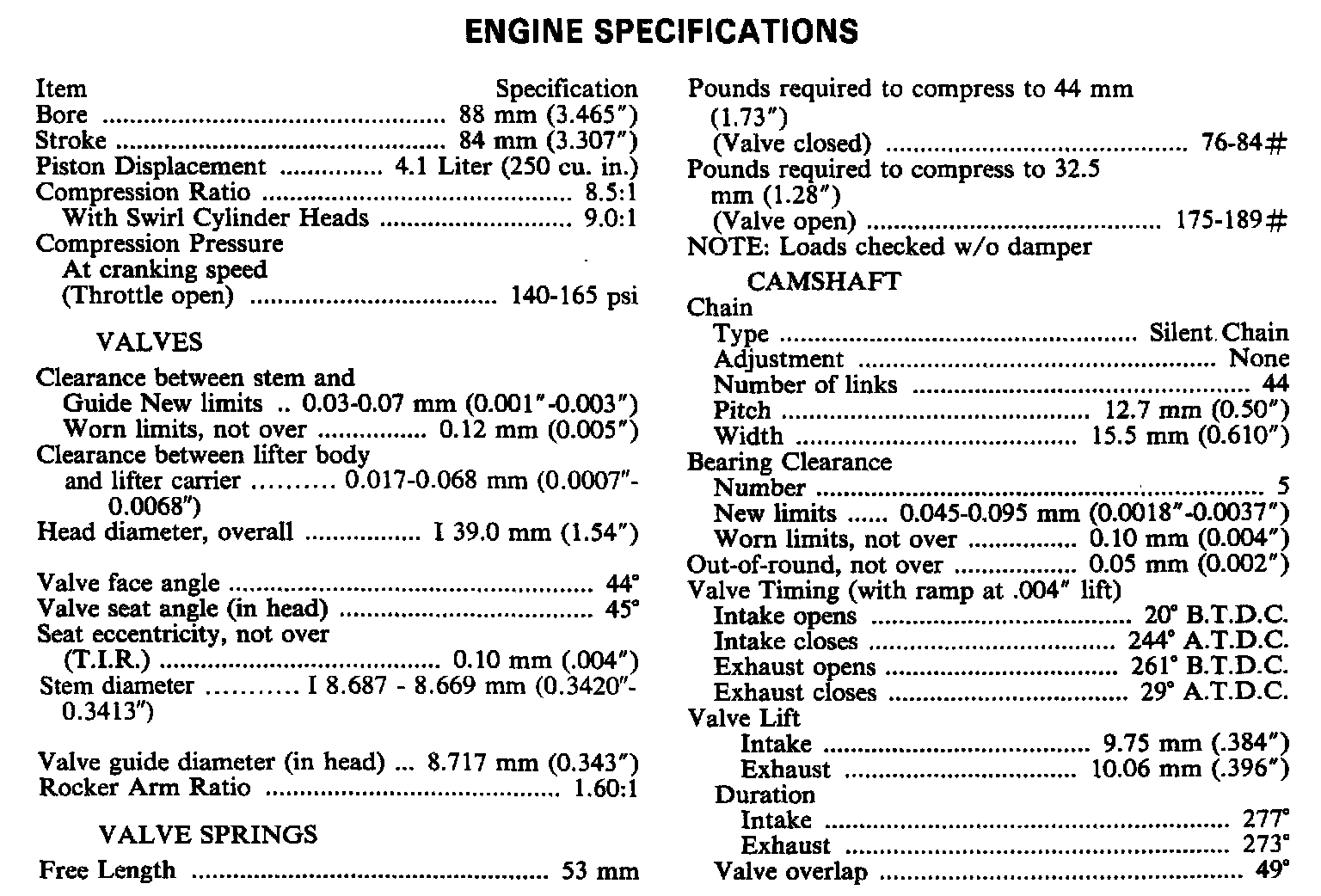 Continued Engine Specifications: