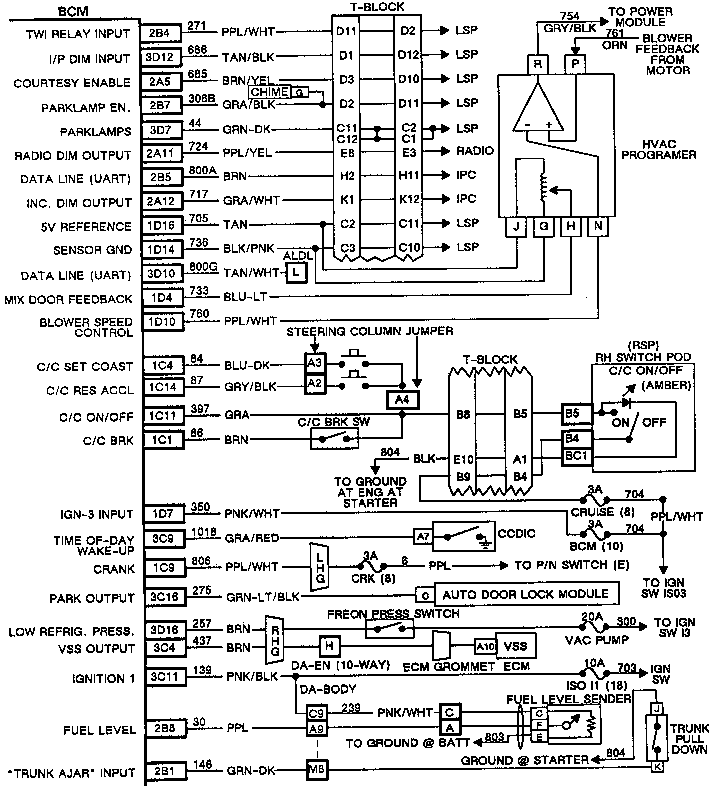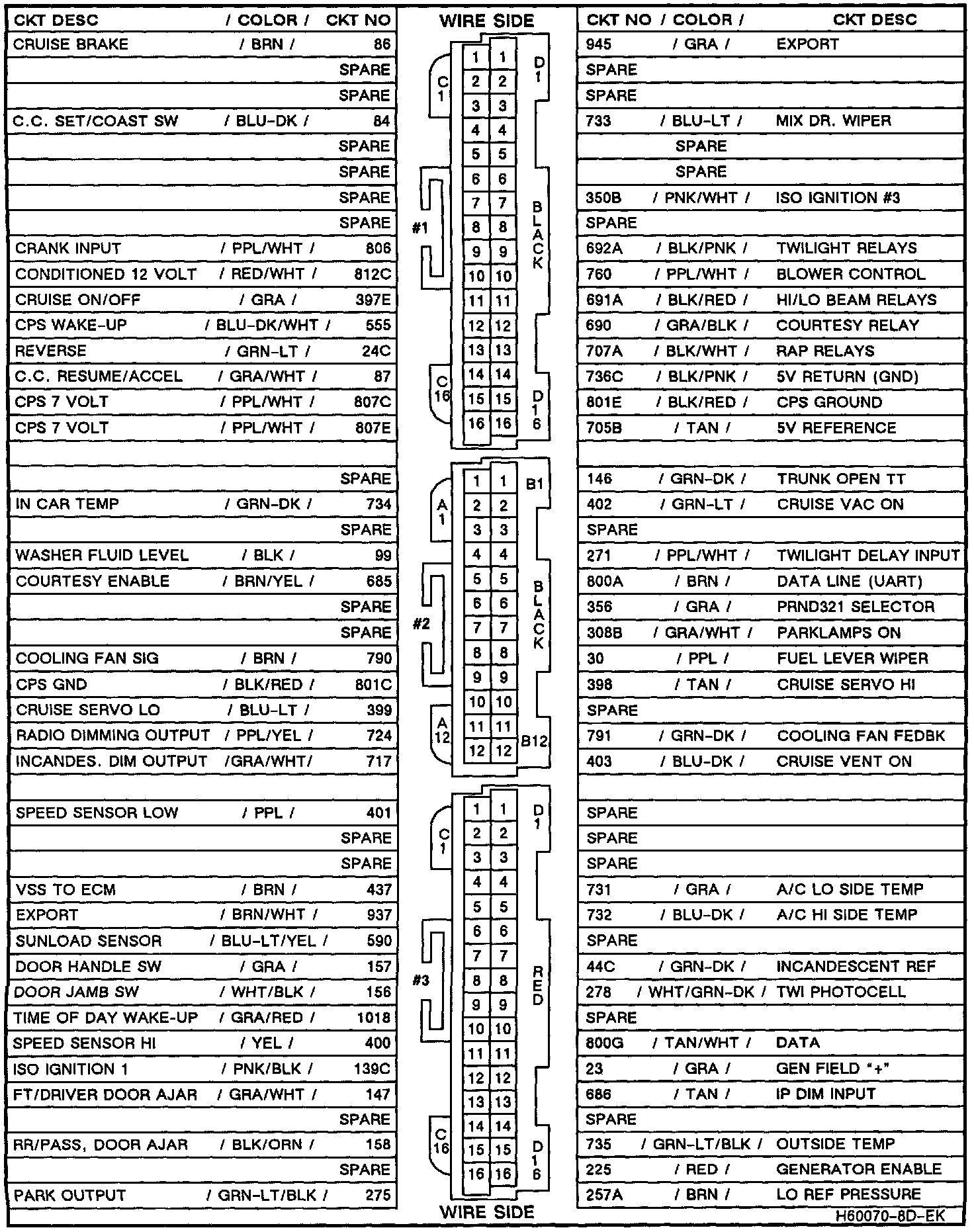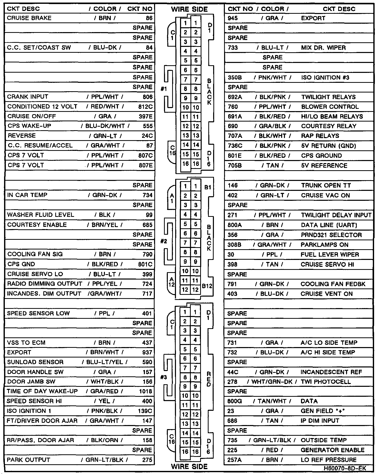 Wire Side BCM Connector View: