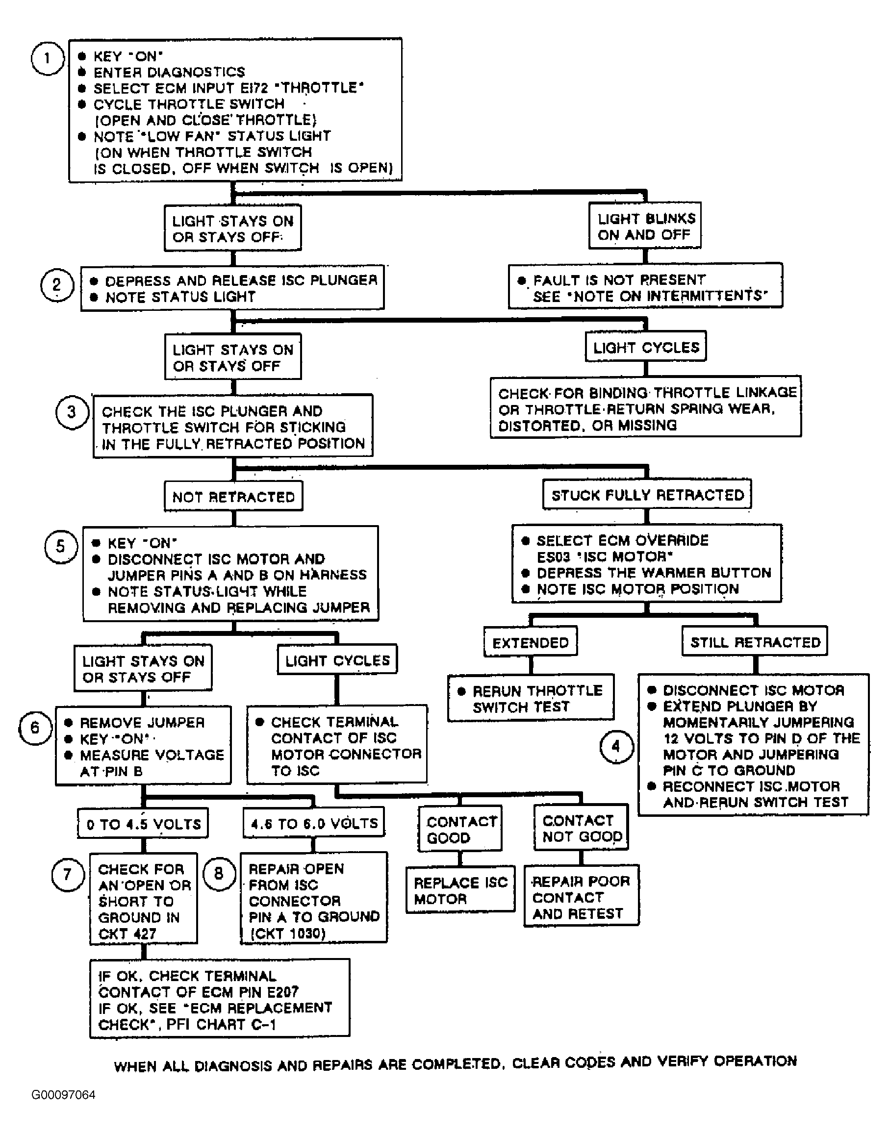 - This step simulates throttle switch shorting pins "A" and "B" of the ISC. If status light indicates cycling, harness and ECM are okay. Fault is in ISC motor connector or ISC motor.