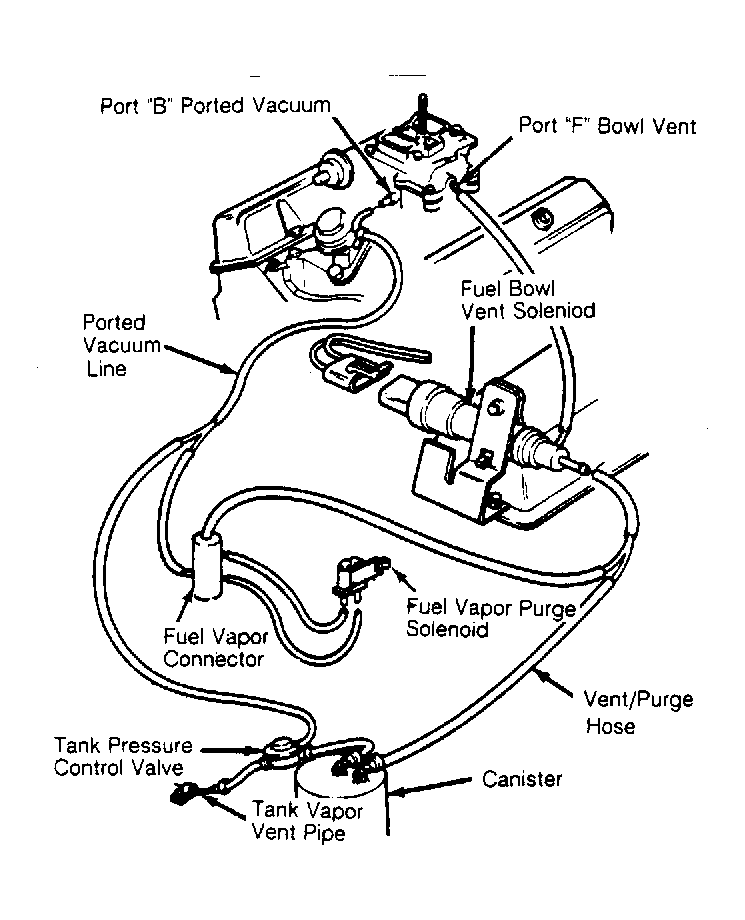 Fig 1: Evaporative Emission System (3.8L & 5.0L Carbureted Engines Shown; Other Models Similar)