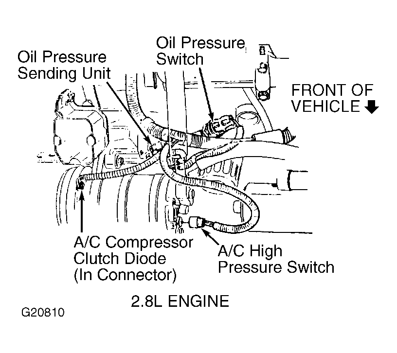 A/C Compressor Clutch Diode In A/C compressor connector. See Figure & 10.