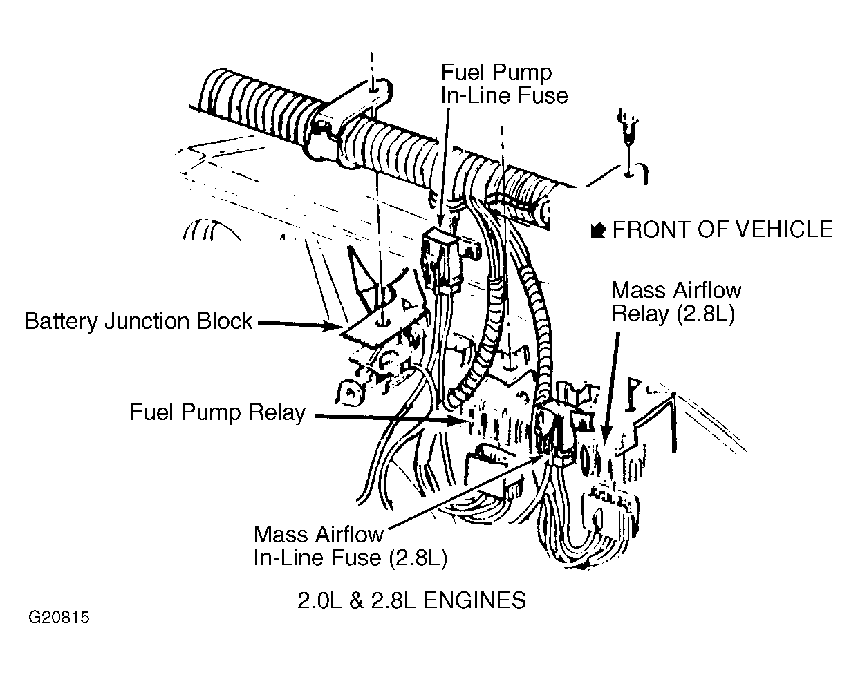 Mass Airflow In-Line Fuse (2.8L) On left side of firewall. See Figure.