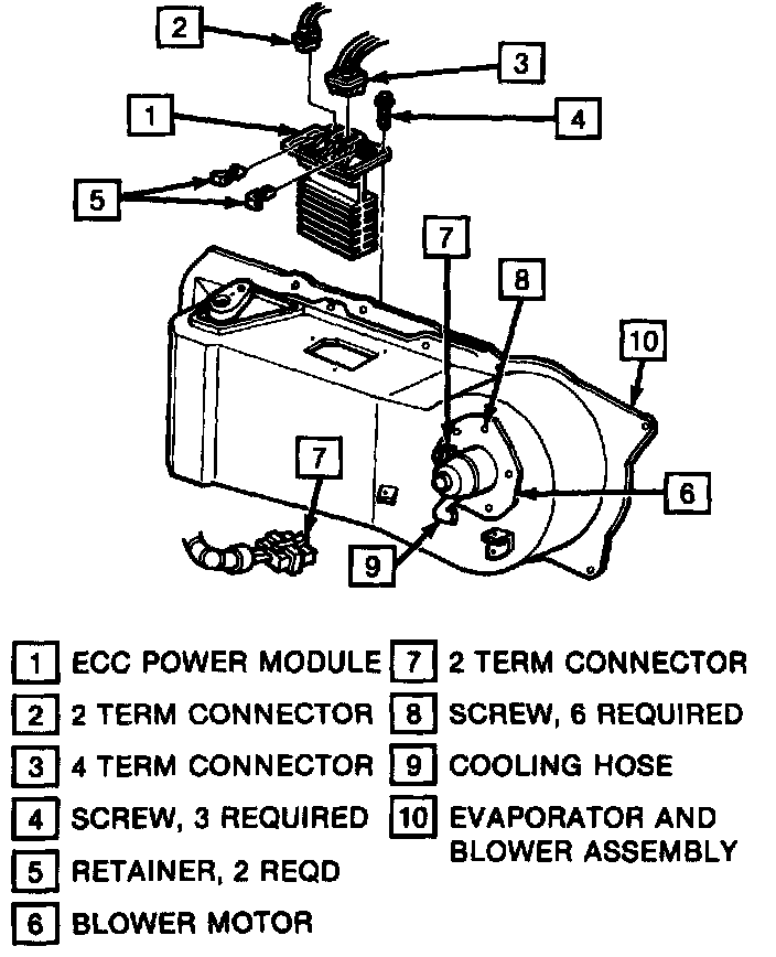 The Power Module is located on top of the evaporator and blower assembly.