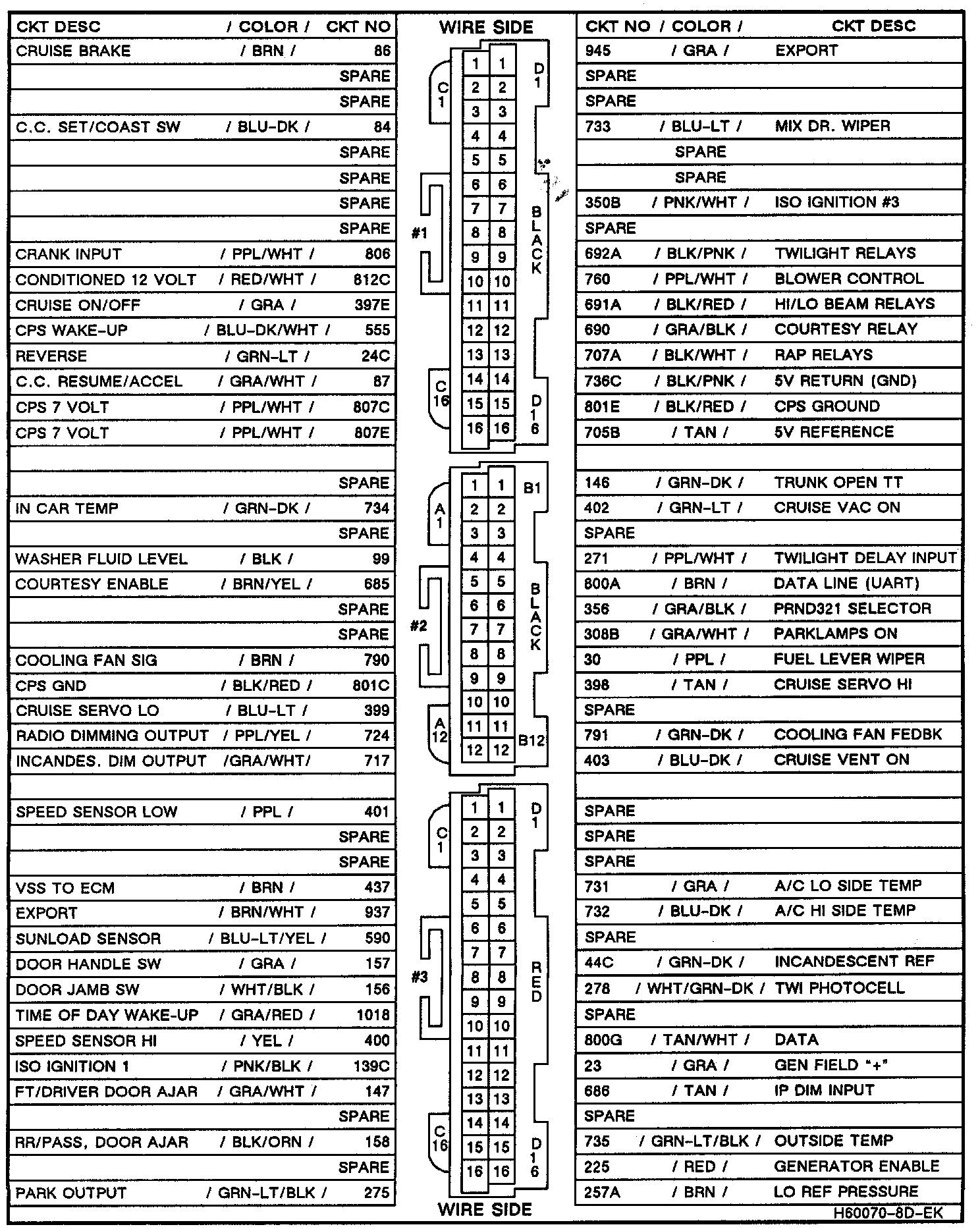 Wire Side BCM Connector View: