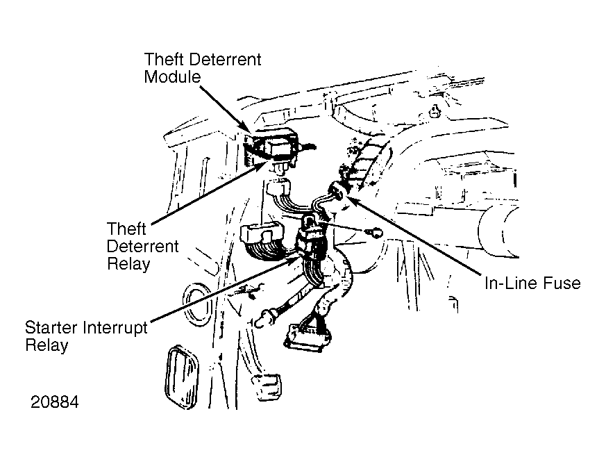 | Theft Deterrent Module | Under left side of dash, near kick panel. See Figure. |