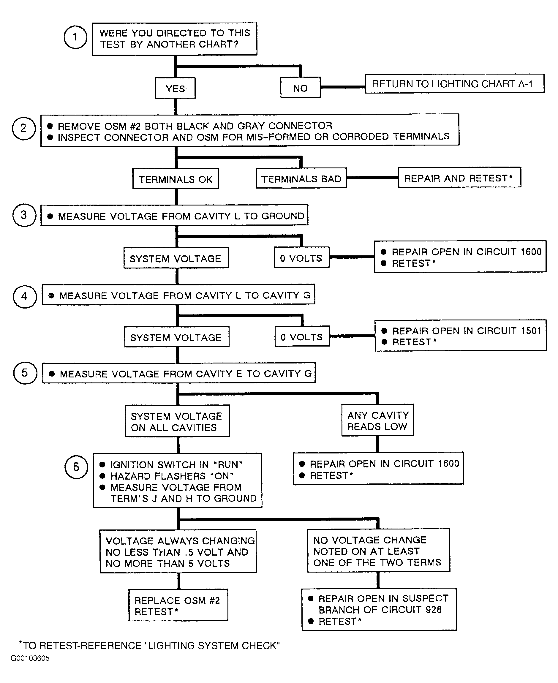The following numbered steps refer to circled numbers on diagnostic chart. See Figure