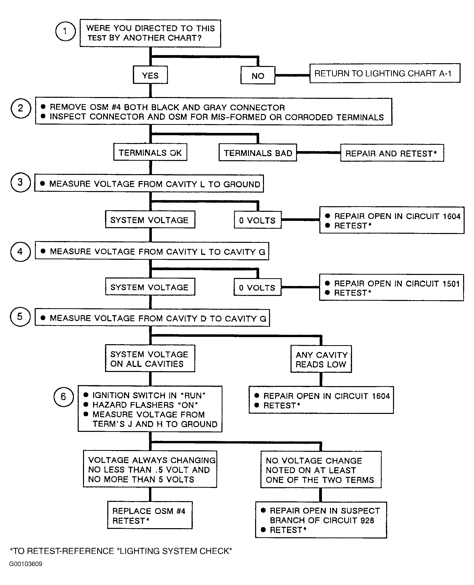The following numbered steps refer to circled numbers on diagnostic chart. See Figure