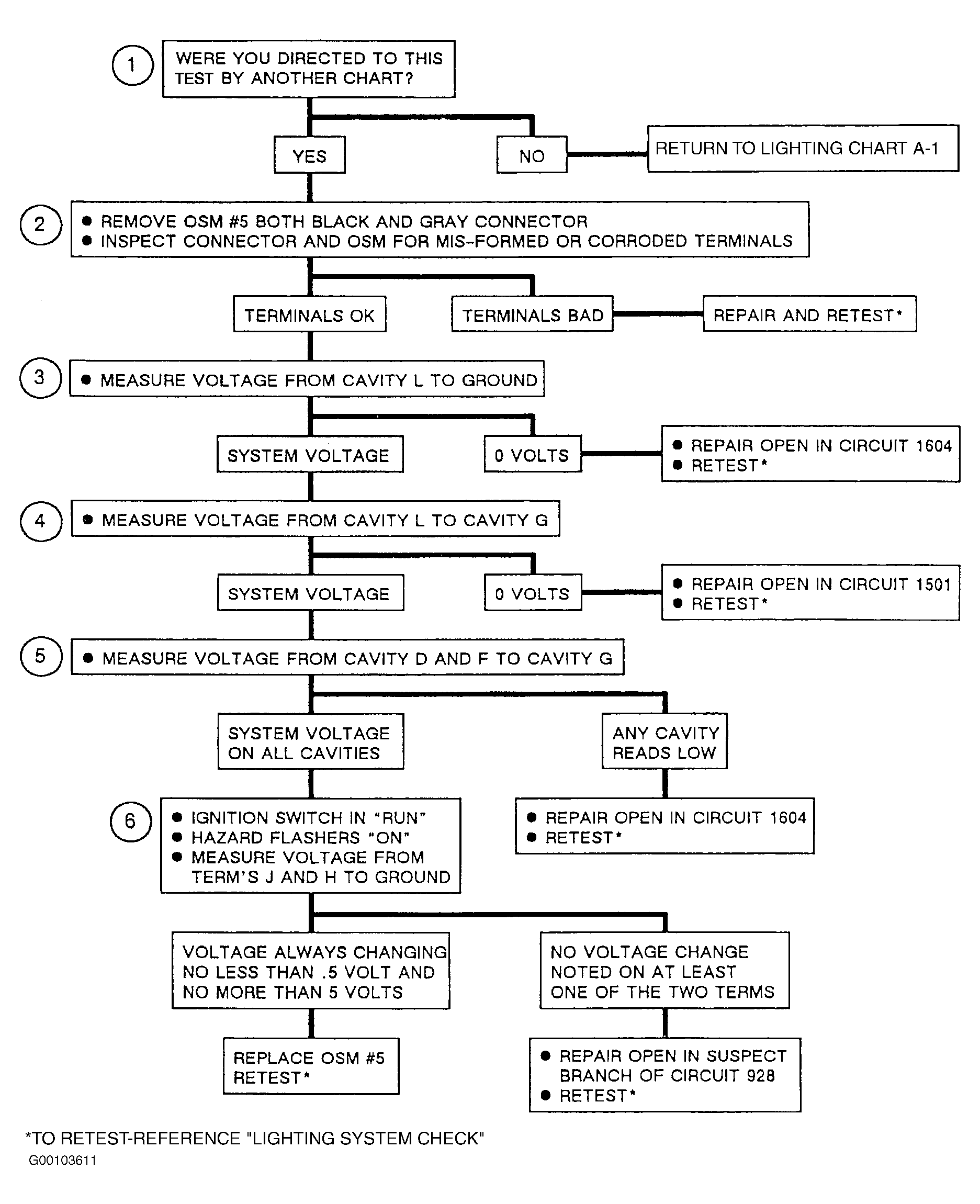 The following numbered steps refer to circled numbers on diagnostic chart. See Figure