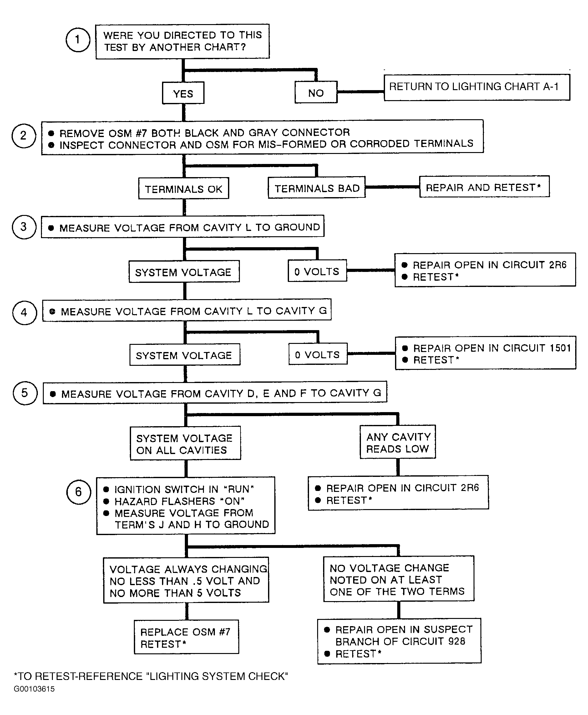 The following numbered steps refer to circled numbers on diagnostic chart. See Figure