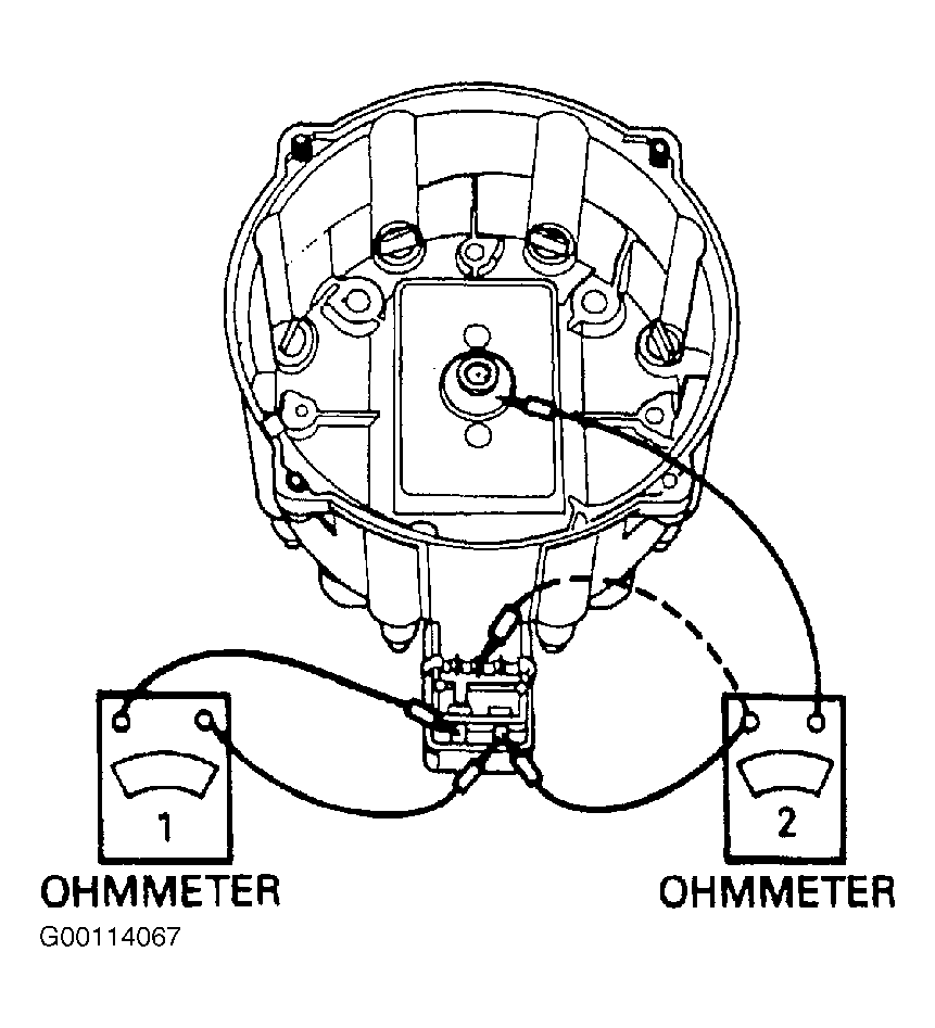 4. Connect ohmmeter both ways, test 2, see Fig 1 . Use high scale. replace coil only if both readings are infinite.