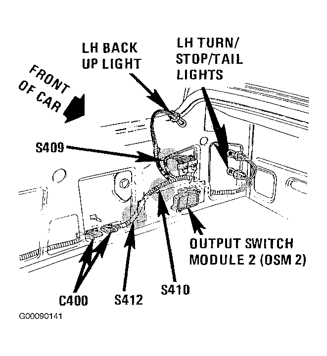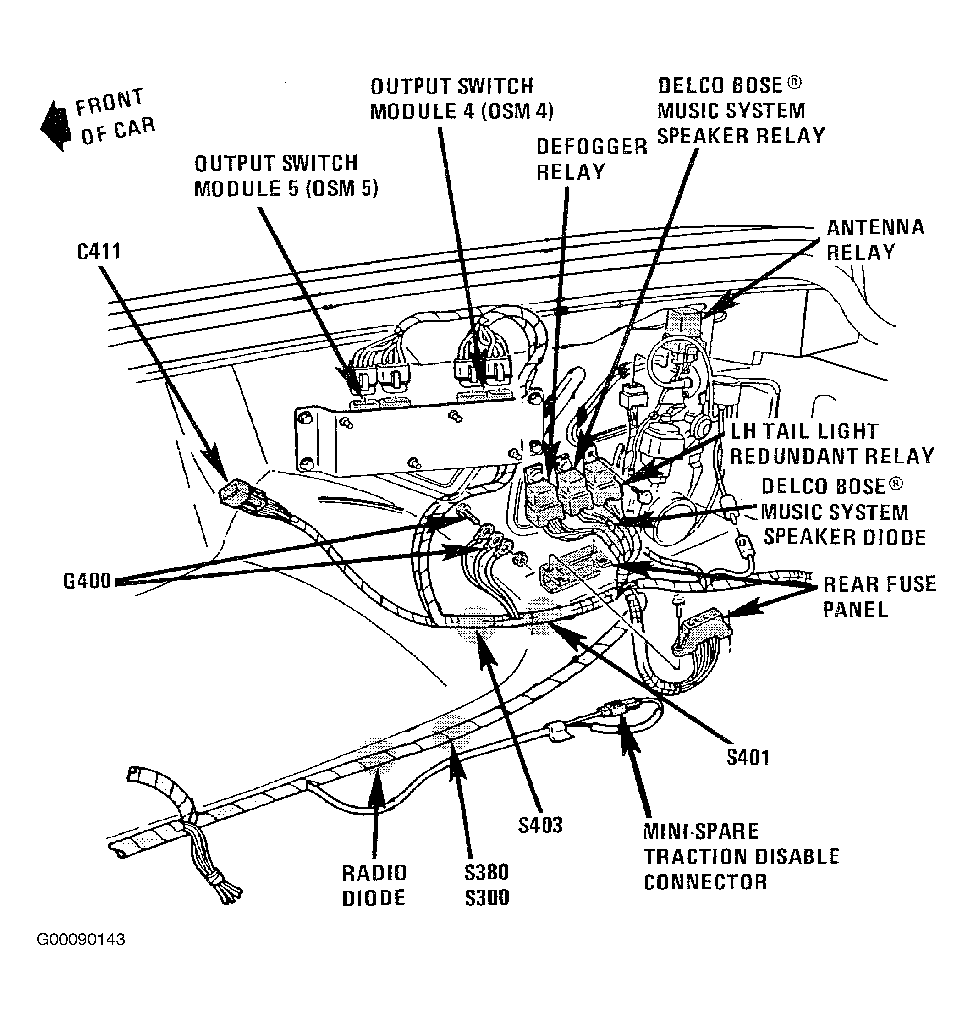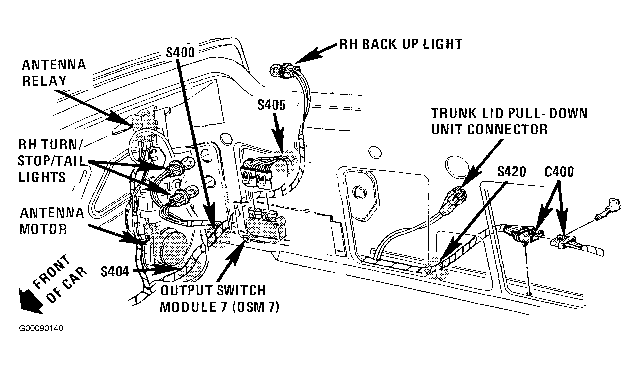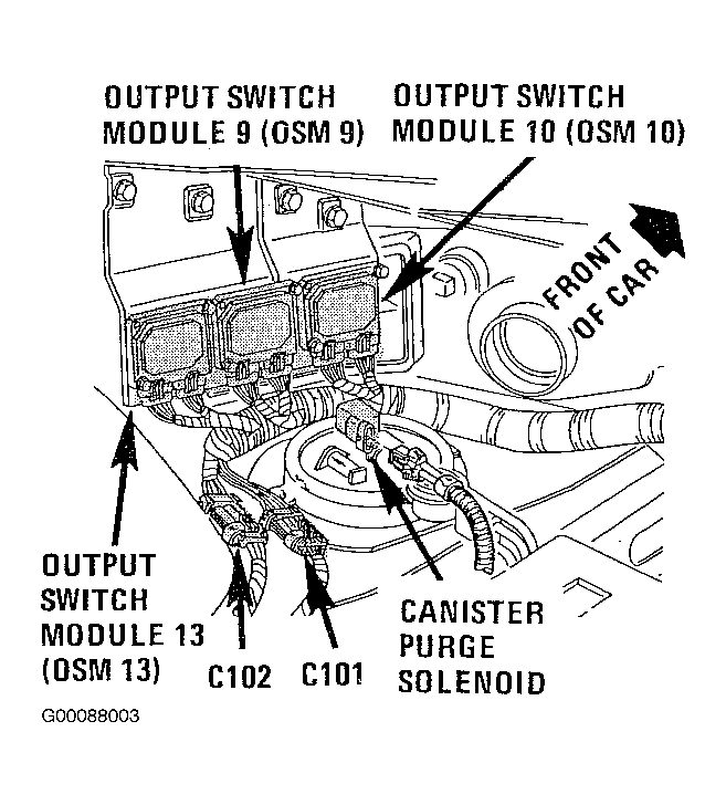 | Output Switch Module (OSM) No. 3 | Left Rear Of Trunk, On Base Of End Panel |