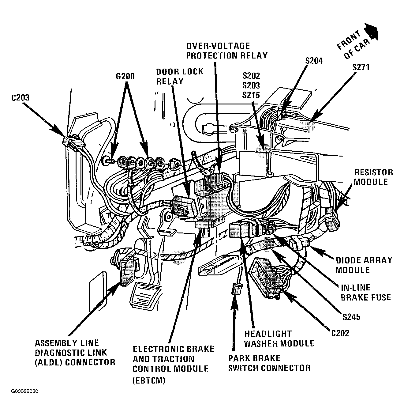 | Electronic Brake Control Module | Behind Left Side Of Instrument Panel, Left Of Steering Column. See Fig 1 . |
