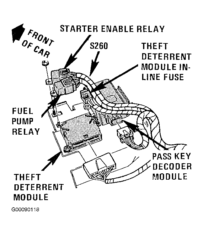 | Theft Deterrent Module | Behind Right Side Of Instrument Panel, Above Heater & A/C Plenum. See Fig 11 . |