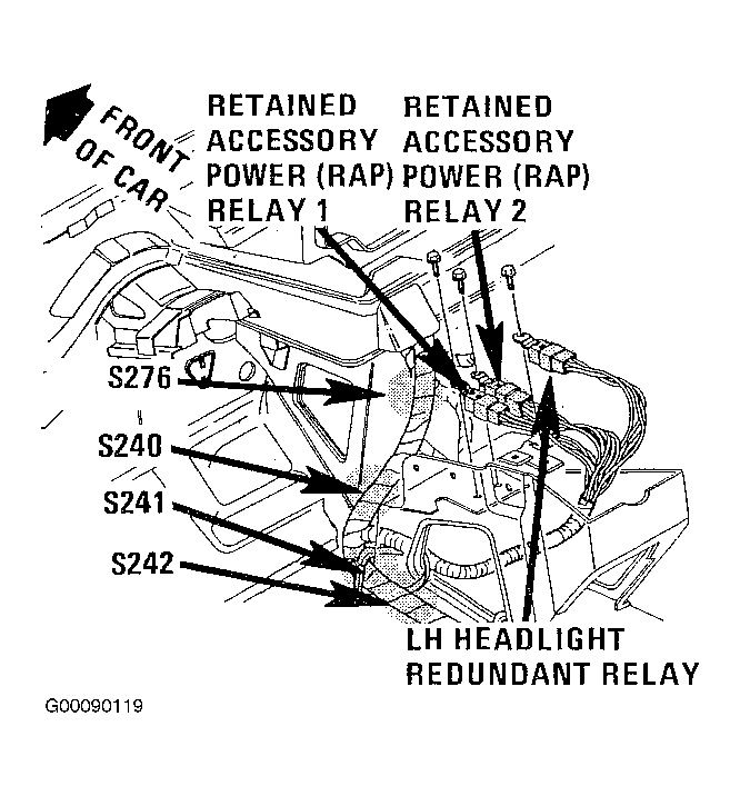 | RAP Relay No. 2 | Behind Right Side Of Instrument Panel, Above Heater & A/C Plenum. See Fig 10 . |
