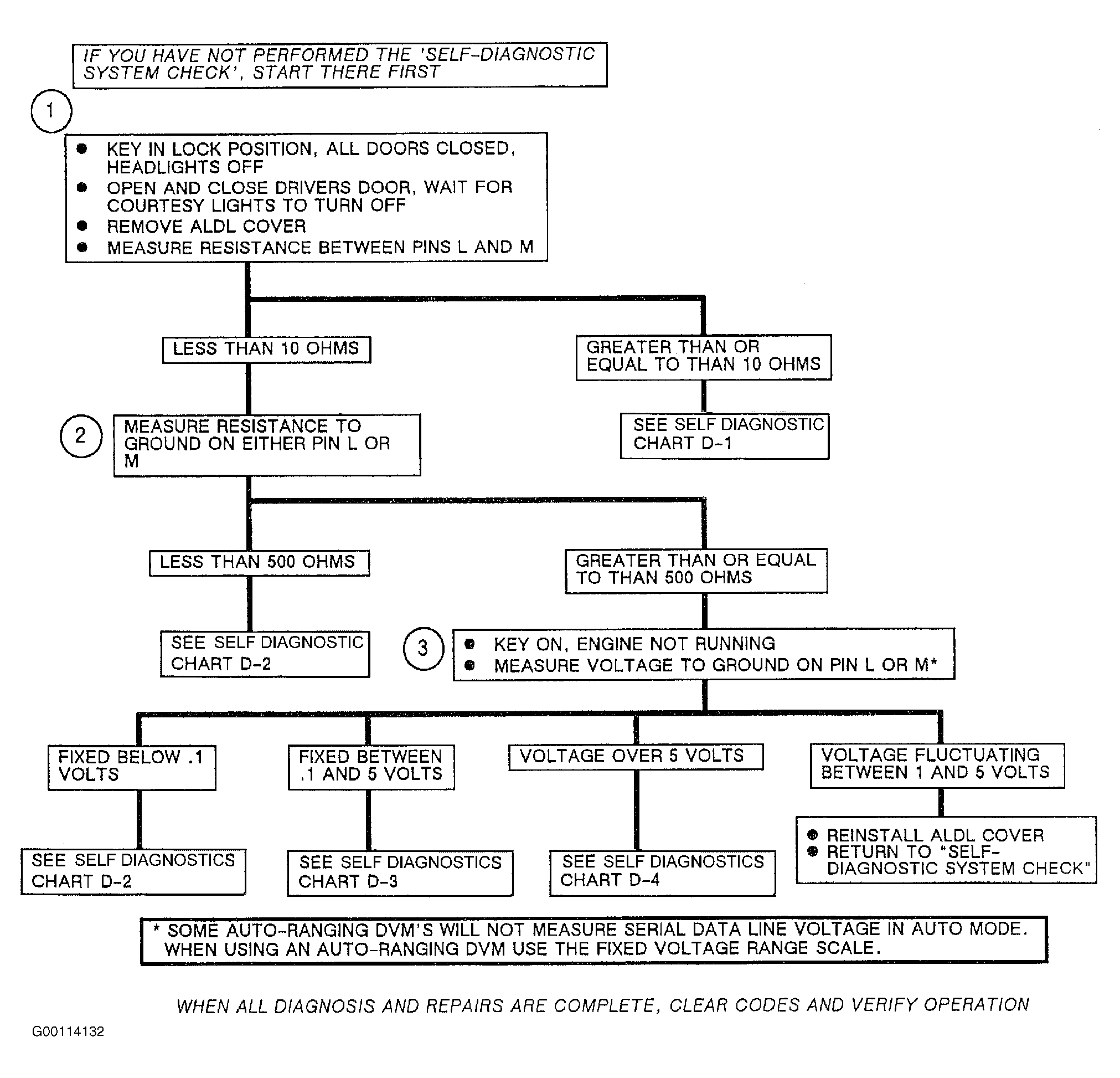Home >> Cadillac >> 1991 >> Allante F7/ME9 >> Repair and Diagnosis >> Body & Frame >> Body, Cab Control Systems >> Body Computer Module >> Self Diagnostics System Check >> Chart D: Data Circuit Problem