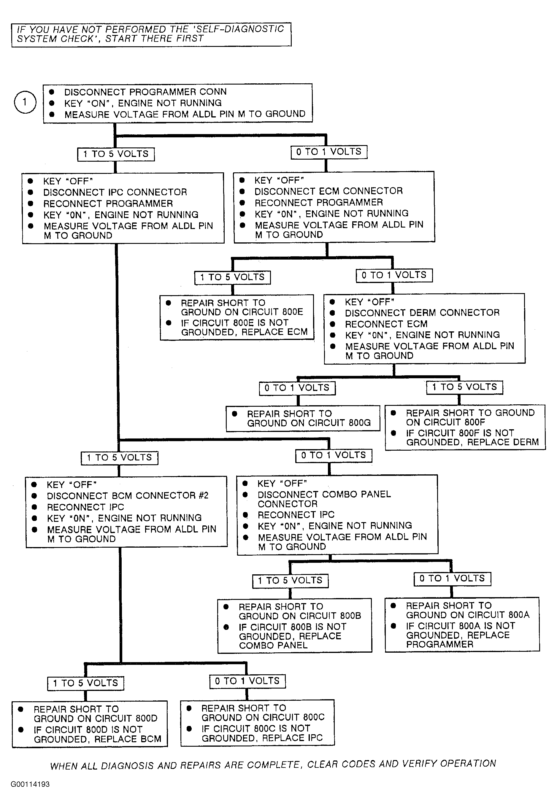 Home >> Cadillac >> 1991 >> Allante F7/ME9 >> Repair and Diagnosis >> Body & Frame >> Body, Cab Control Systems >> Body Computer Module >> Self Diagnostics System Check >> Chart D-2: Data Circuit Grounded