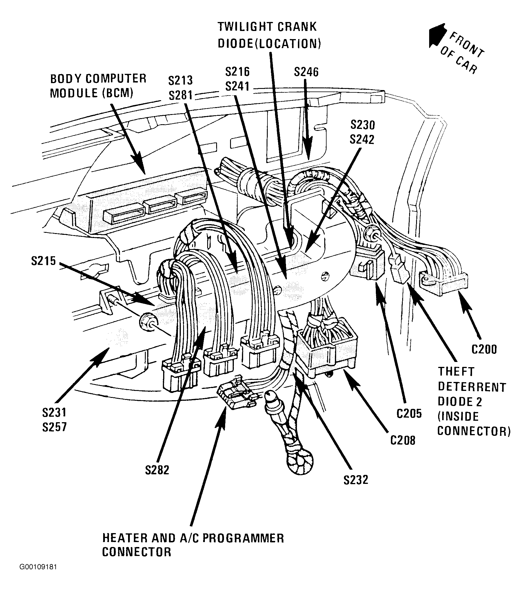 | S207 | On Dash Harness, Behind Right Side Of Instrument Panel, In End of Dash Harness |