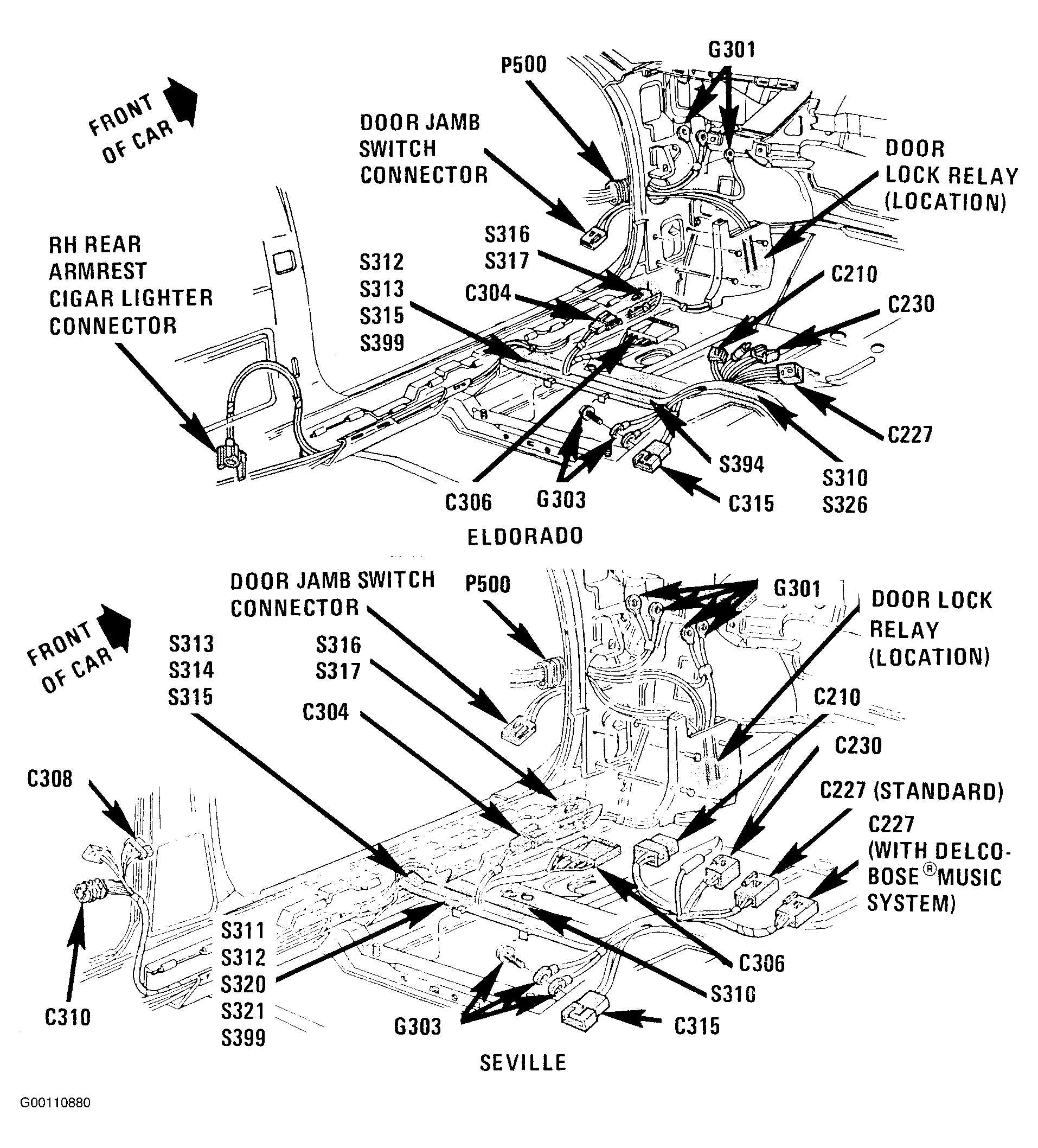 | S394 (Seville) | In Body Main Harness, Below Right Front Seat, Sixteen Inches From Right Front Seat Connectors Breakout. See Fig 3 . |